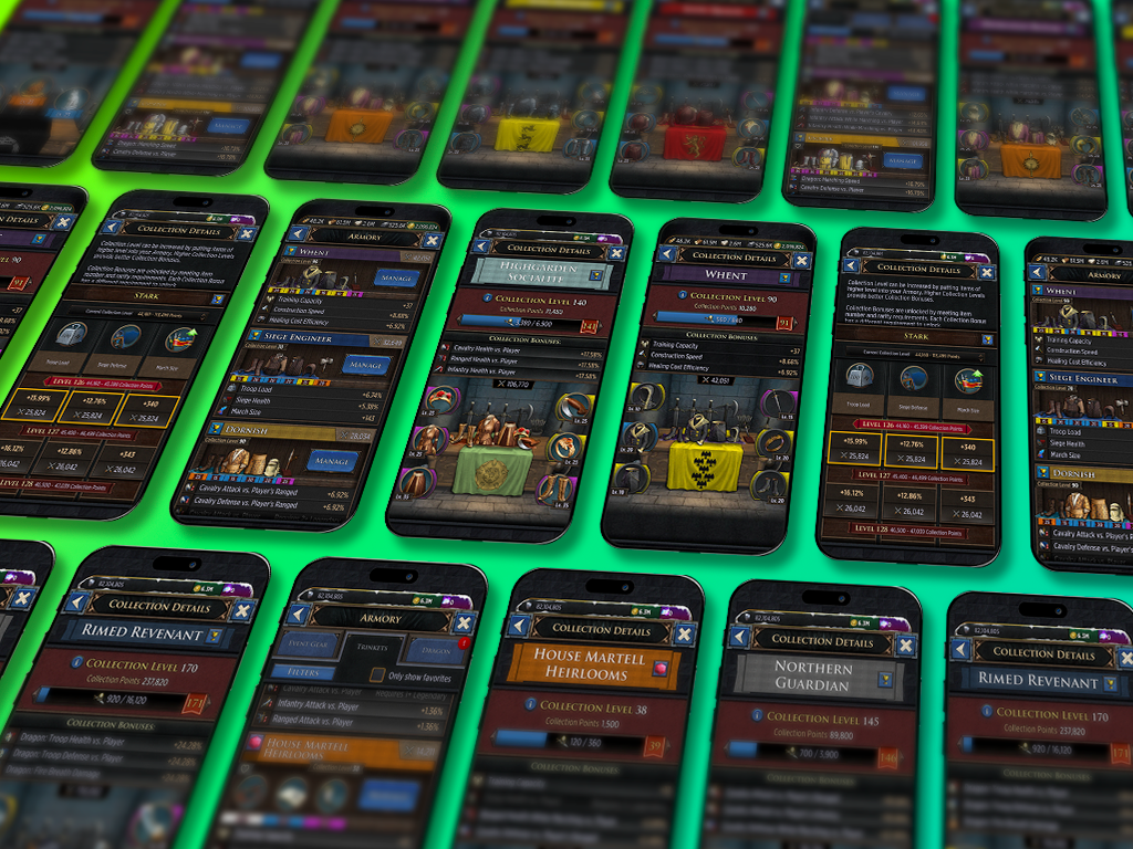 Game of Thrones: Conquest launched with a deep and rewarding crafting system, but after years of live updates, older gear sets began to lose relevance as newer, more powerful items entered the game. The Armory was introduced to address this, adding a new layer of depth to crafting while giving legacy gear sets renewed purpose. By equipping items in the Armory, players unlock boosts across a wide range of gameplay stats, incentivizing them to craft diverse sets rather than chasing only the latest and most powerful equipment.