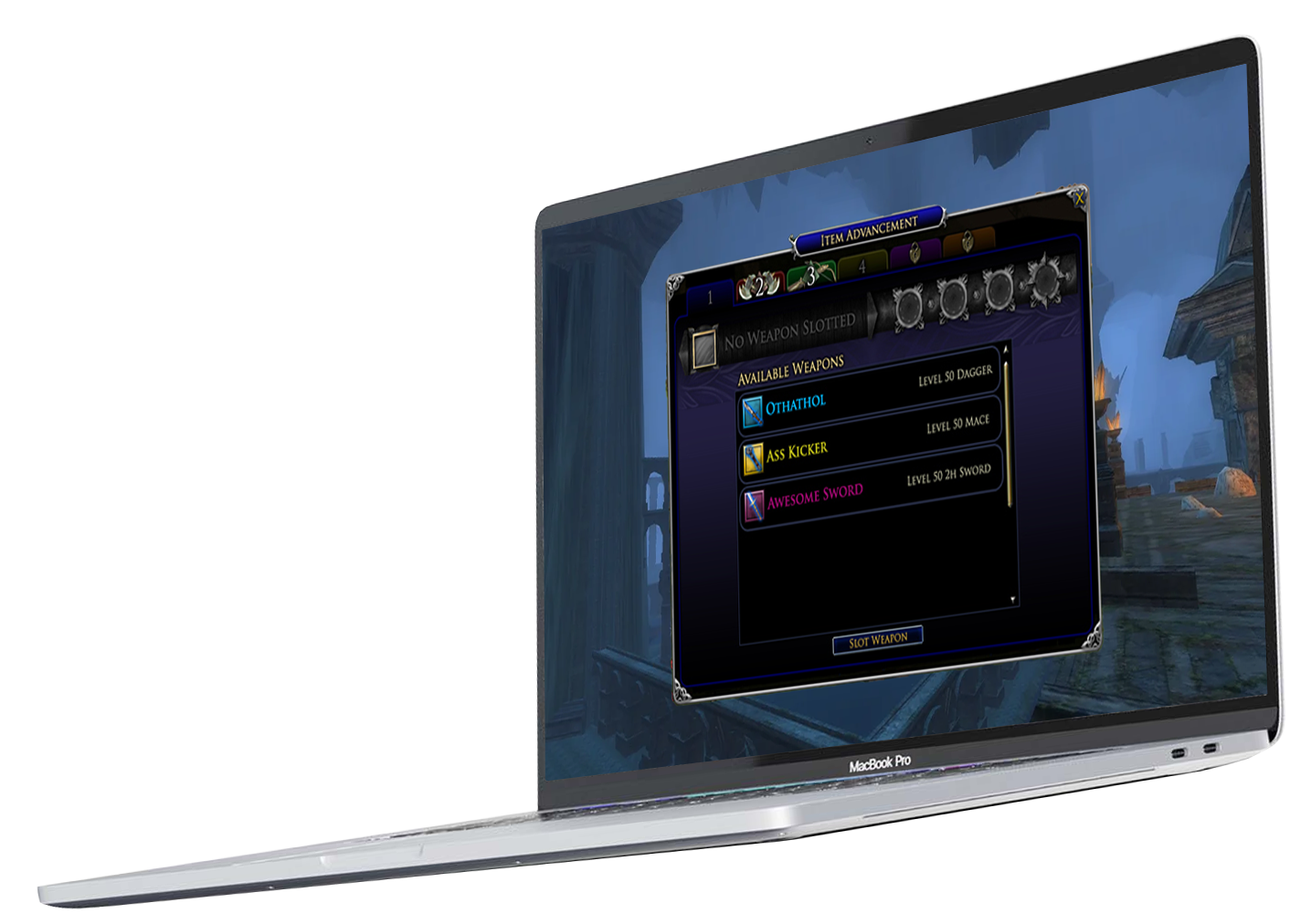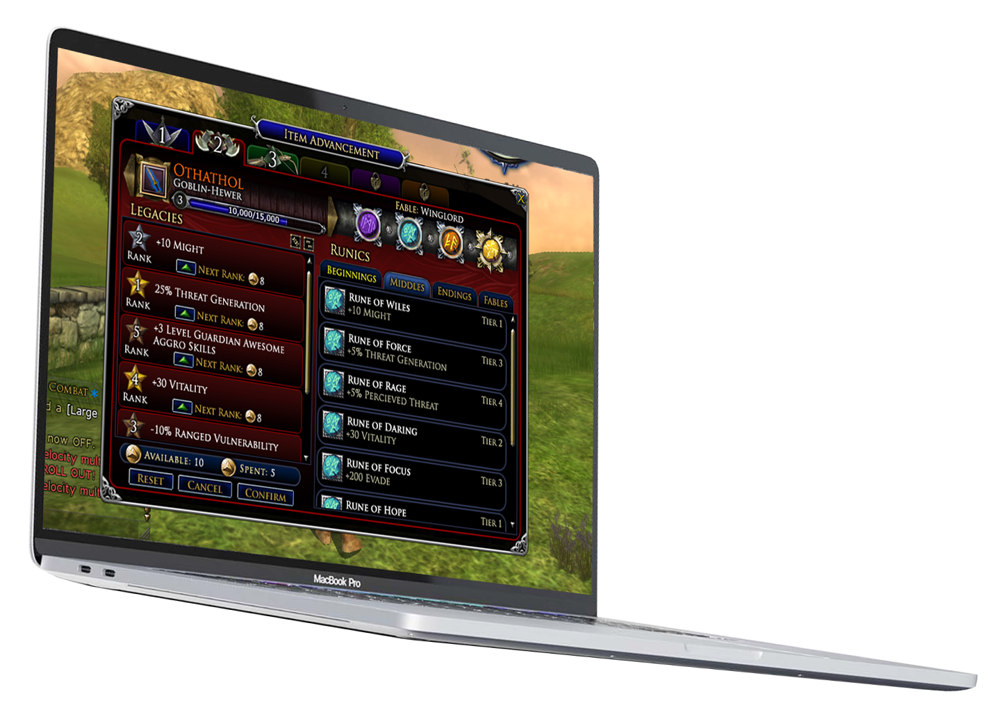 The Lengendary Items system was the flagship feature that shipped with the Mines of Moria expansion pack. Players could acquire and grow their own legendary weapons, such as swords, daggers, and class-specific items, modeled after artifacts like Sting, Glamdring, and Andúril. Players progressed their items through a Forge Master NPC, who identified, reforged, and upgraded weapons over time. Item Titles, earned through instanced quests inside Moria, allowed further customization including damage type changes.