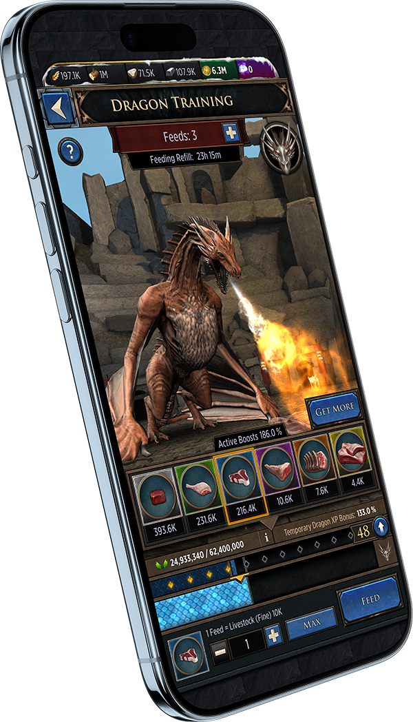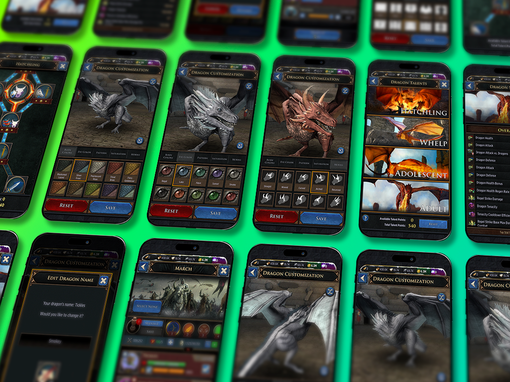 Dragons were created as a new progression vertical that deepened immersion and opened up meaningful monetization opportunities. The system needed to deliver on the fantasy of raising a dragon while creating long-term engagement and strategic value inside the core game loop.
